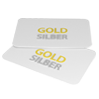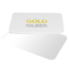Plastikkarte mit Heißfolienprägung in Gold oder Silber bedruckt auf weißem Hintergrund
